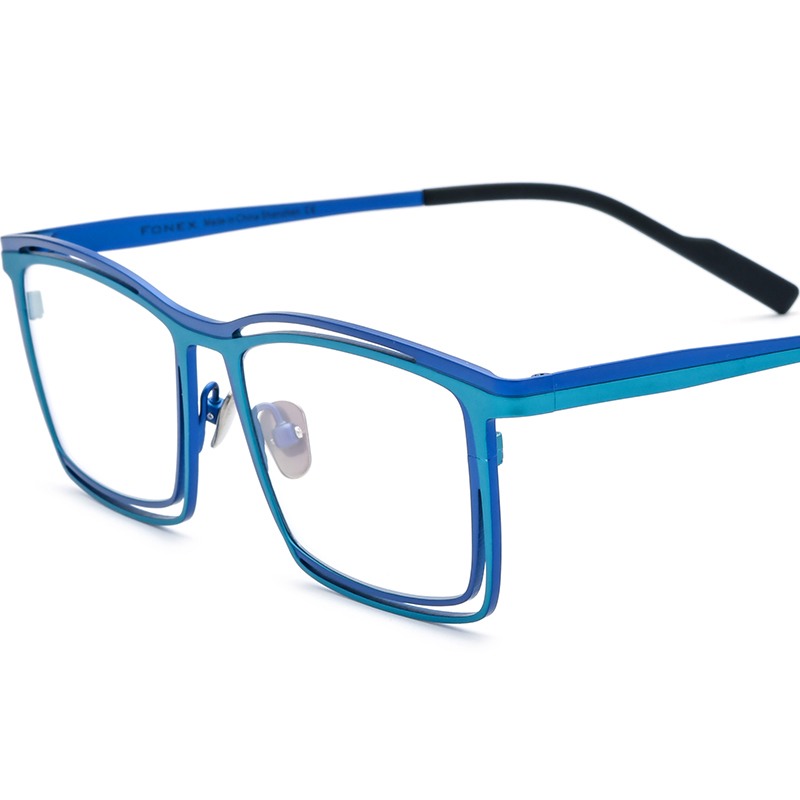 FONEX多色超轻纯钛近视眼镜框架男女款设计师素颜百搭方形眼睛可配度数F85781