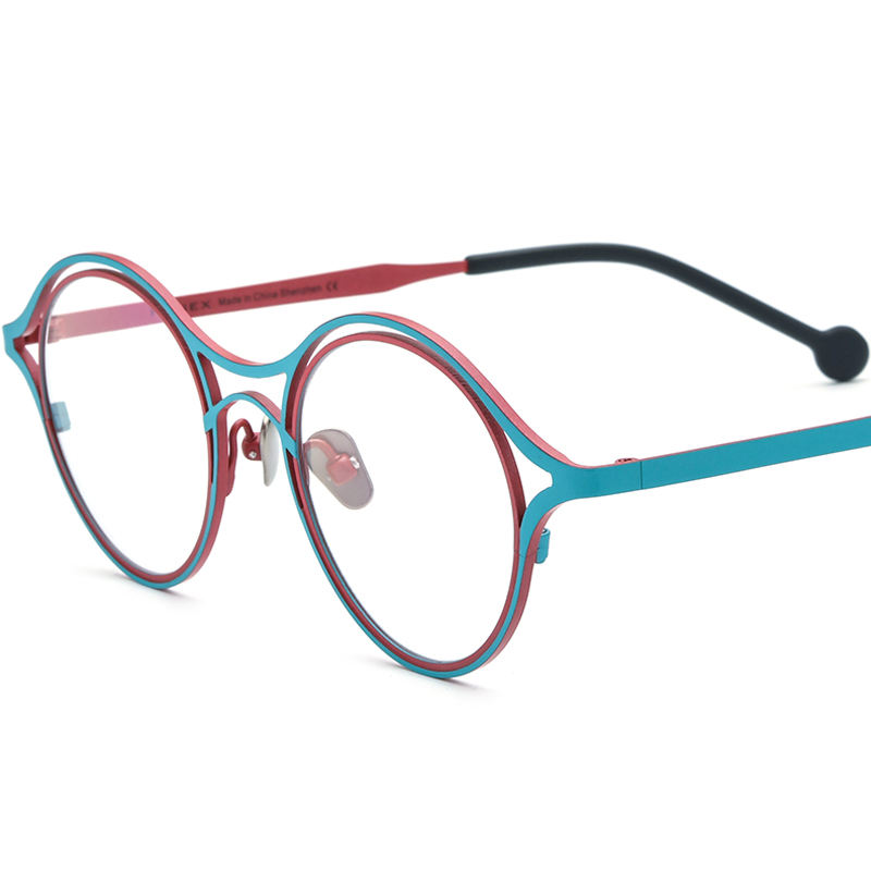 FONEX多色超轻纯钛近视眼镜架男女款设计师素颜神器百搭3/4圆形眼睛框F85745
