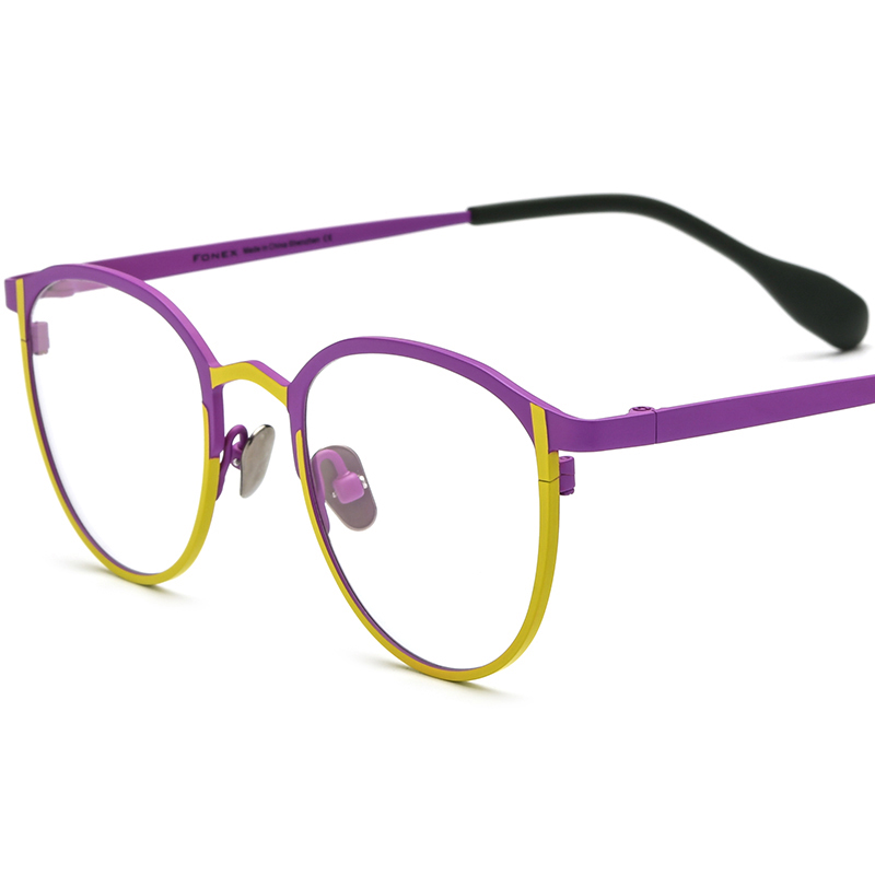 FONEX 多色超轻纯钛近视眼镜框架男女款设计师素颜百搭圆形眼睛可配度数F85782