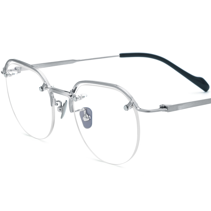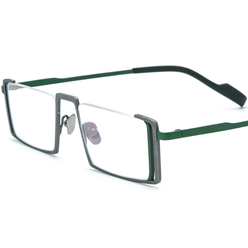 FONEX 超轻纯钛近视眼镜架女款个性方形设计师显脸小半框眼睛框可配度数BYY0041