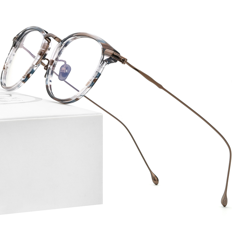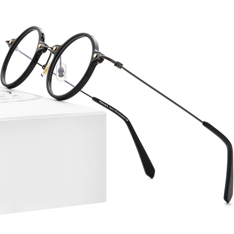 FONEX 超轻板材纯钛眼镜架男女款拼色潮素颜百搭个性复古圆形近视眼睛框E-046