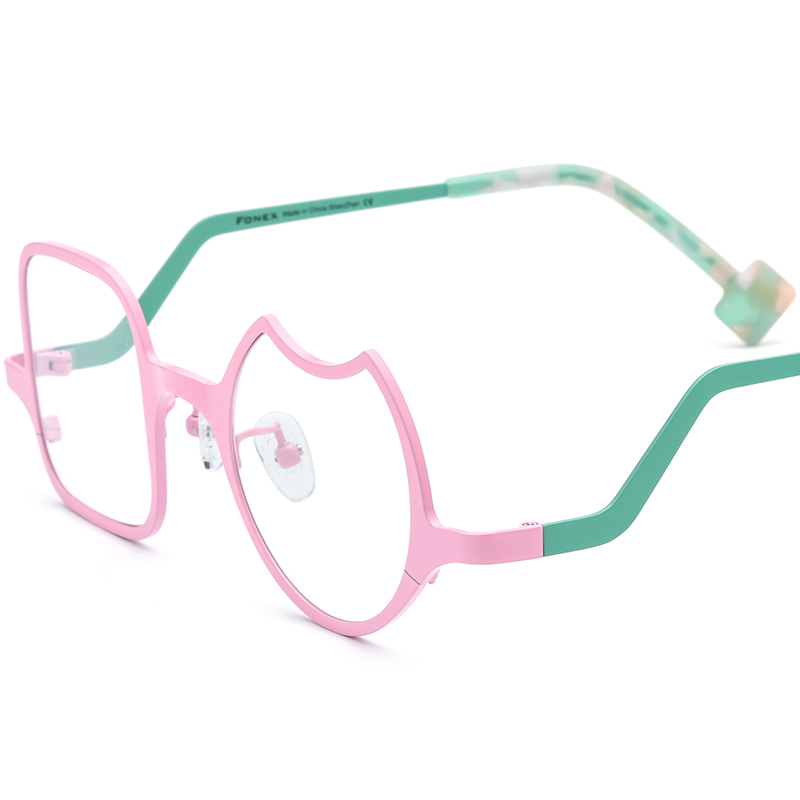 FONEX 超轻多色纯钛不规则眼镜框架男女款小清新潮流近视眼睛可配度数F85787