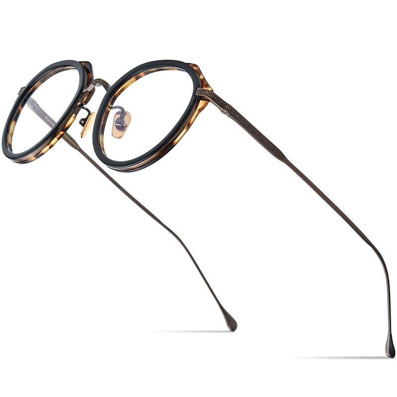 FONEX 超轻多色纯钛3/4圆眼镜框架男女款复古好物时尚近视眼睛可配度数F85785