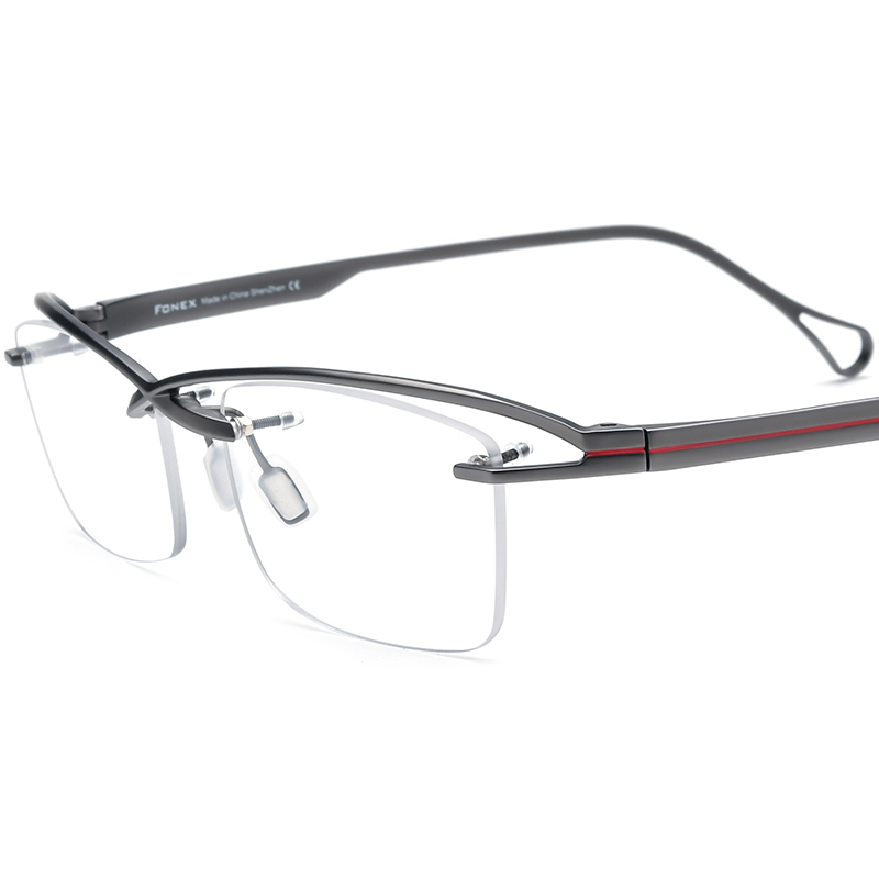 FONEX 超轻纯钛方形眼镜框架男女款复古好物半框近视眼睛可配度数F85757