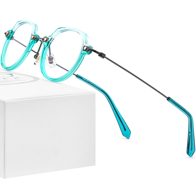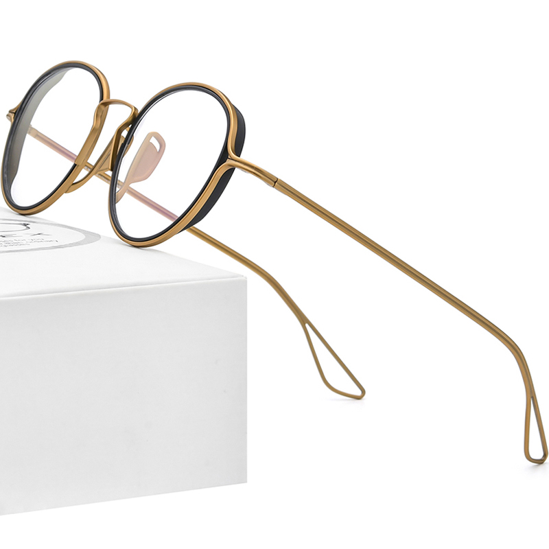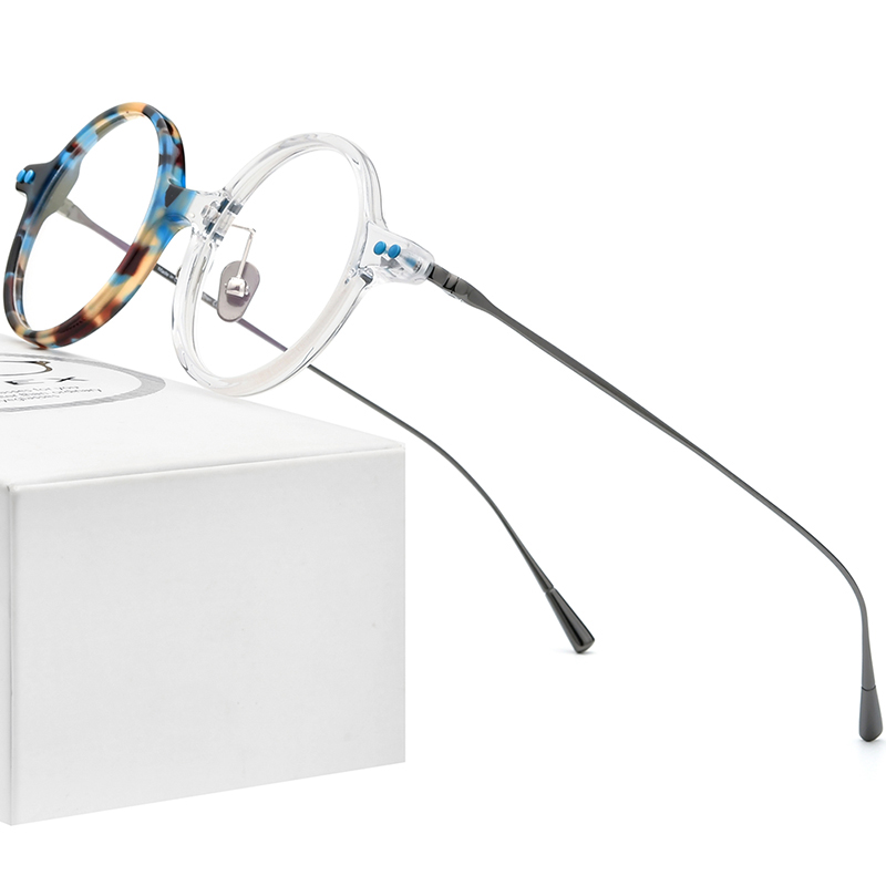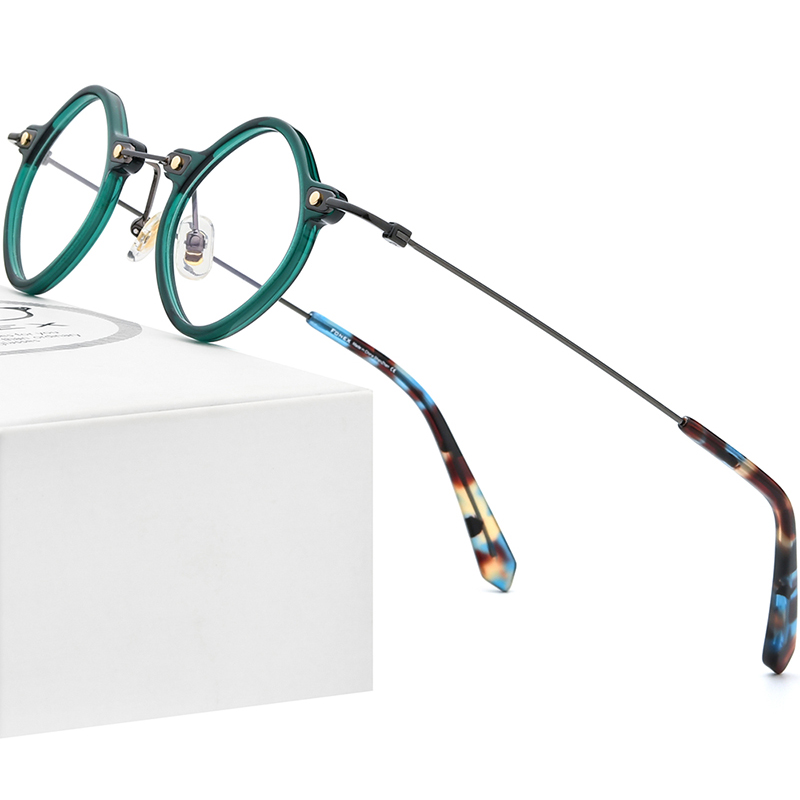 FONEX 超轻板材纯钛眼镜架男女款拼色潮素颜百搭个性复古圆形近视眼睛框F85701