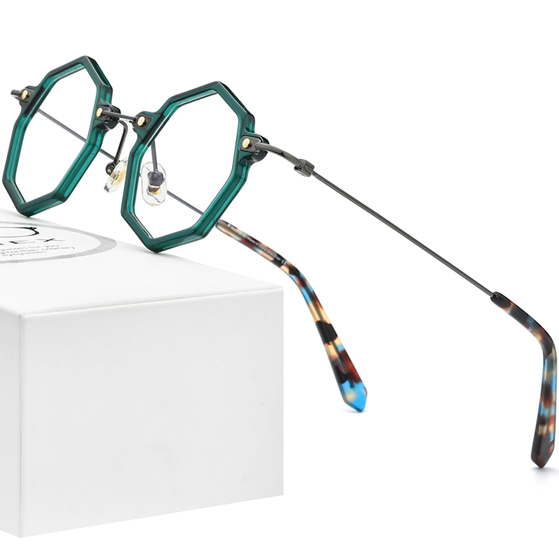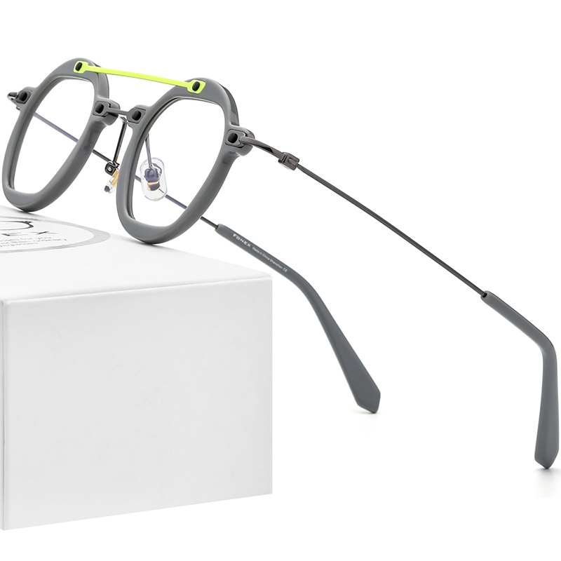 FONEX 超轻板材纯钛眼镜架男女设计师款文艺多边形近视眼睛框可配度数片F85713