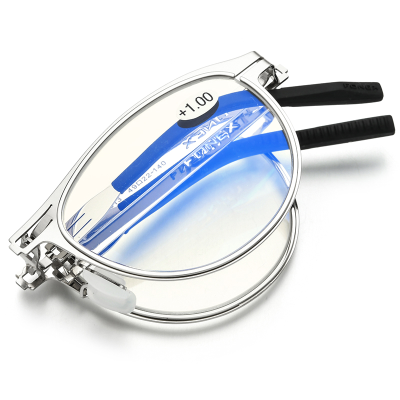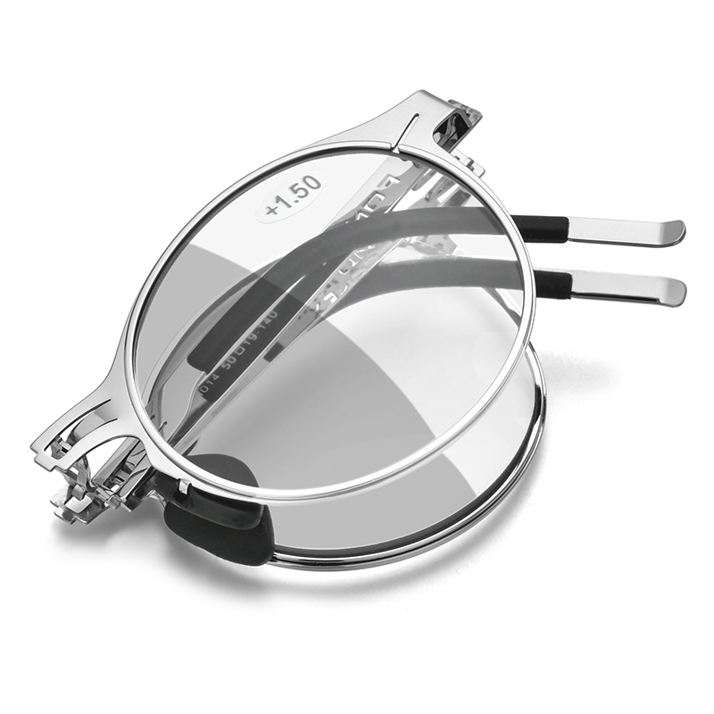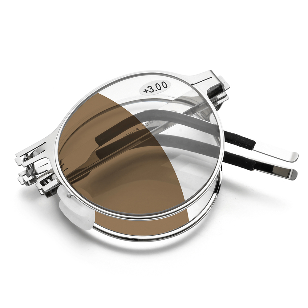 FONEX 光致感光变色防蓝光老花镜男女圆形超轻可折叠便携式老人阅读眼镜LH014